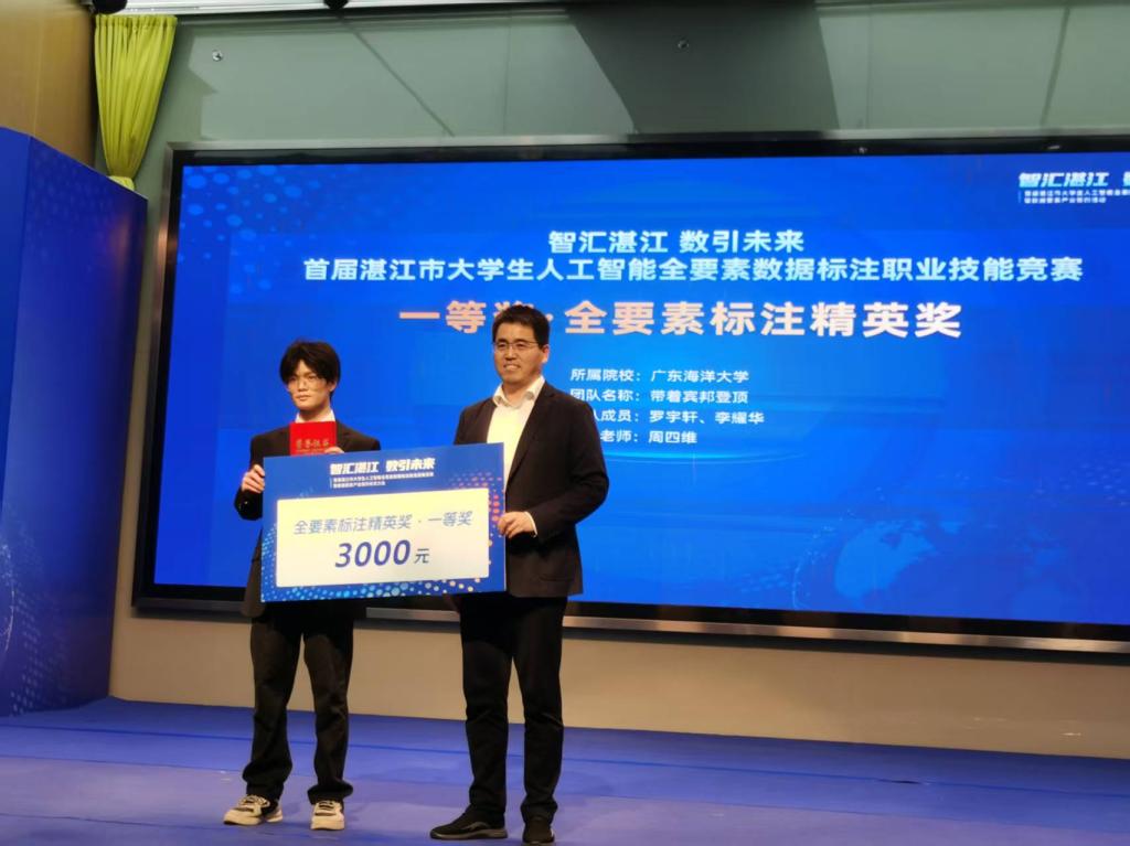近日,由湛江市赤坎区人民政府联合国家超算广州中心、湛江分中心等单位共同举办的首届湛江市大学生人工智能全要素数据标注职业技能竞赛圆满落幕。我校数学与计算机学院学子在赛事中表现亮眼,凭借扎实的专业功底与高效的实战能力脱颖而出,斩获大赛唯一的一等奖1项、三等奖1项、优秀奖1项,充分展现了我校青年学子卓越的数字素养与工程实践能力。