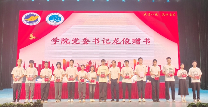 紧接着学院党委书记龙俊为各专业新生代表赠送《习近平与大学生朋友们》第二卷,以书籍为媒传递青春指引,要求全体新同学认真研读,深刻领悟习近平总书记关于青年工作的重要思想,深刻感悟习近平总书记对青年一代的高度重视和殷切期望,努力成长为堪当民族复兴重任的时代新人。