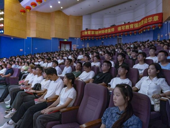 龙俊书记则以“弘扬抗战精神,在传承和担当中彰显青春本色”为主题,通过分享电影《南京照相馆》里的故事情节、九三阅兵的盛大场景,带领新生感悟抗战精神“天下兴亡、匹夫有责的爱国情怀,视死如归、宁死不屈的民族气节,不畏强暴、血战到底的英雄气概和百折不挠、坚忍不拔的必胜信念”的具体内涵,汲取奋进力量,同时细致解读“多元成才菜单”,鼓励新生涵养家国情怀、坚定理想信念、锤炼过硬本领,以“心中有阳光,脚下有力量”的姿态应对成长挑战。