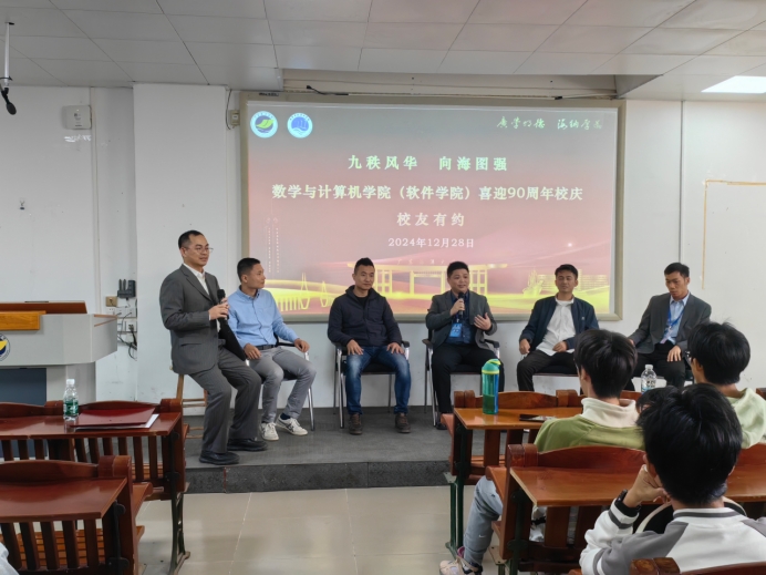 2024年12月28日上午,数学与计算机学院(软件学院)校友会暨发展咨询委员会成立大会于主校区广学楼多功能厅成功召开。以此为契机,学院组织举办了“学科发展研讨会”和“校友论坛”。学院领导、曾在学院工作过的领导及教师代表,以及来自全国各地的30余位校友代表共同出席了这两场会议。