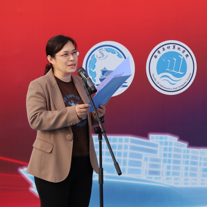 陈春晓在致辞中阐述了此次工作室共建是双方深化政校合作的重要成果。她指出,当前全球航运业快速发展,集装箱运输安全面临新挑战,学校将充分发挥数学与计算机学院、船舶与海运学院优势,进一步推动“海事+人工智能”的深度融合,助力“数智海事”建设走在行业前列。同时,学校将依托工作室平台,在人才培养、科研攻关、社会服务等方面深化协同,努力打造政校合作的新标杆。