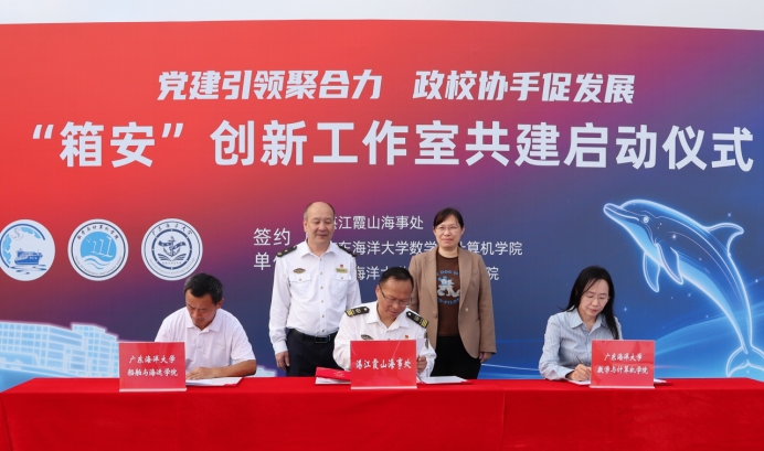 3月19日上午,由广东海洋大学与湛江海事局共同主办的“党建引领聚合力,政校携手促发展——‘箱安’创新工作室共建启动仪式”在霞山海事处海滨大队码头举行。我校党委常委、纪委书记陈春晓,湛江海事局副局长陈永忠出席仪式。我校数学与计算机学院、船舶与海运学院领导班子及师生代表,湛江海事局相关处室负责人,箱安创新工作室共建单位嘉宾参加活动,仪式由霞山海事处政委骆亚养主持。